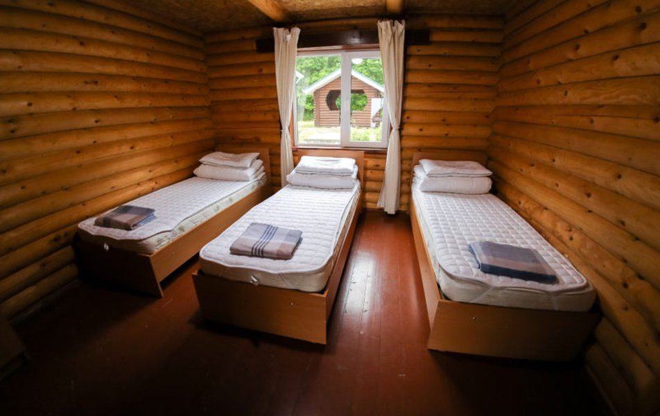 В коттедже: диван раскладной, кровати односпальные /одна двуспальная кровать: в каждой спальне, кухонная мебель, прикроватные тумбочки, стол, стулья, мини-кухня, мини-холодильник, набор посуды, плита электрическая, телевизор, электрочайник